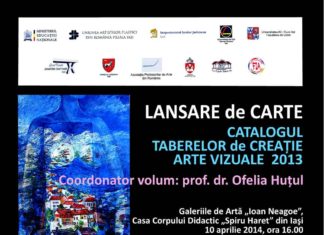 UNIUNEA ARTIŞTILOR PLASTICI DIN ROMÂNIA – FILIALA IAŞI VĂ INVITĂ LA LANSAREA VOLUMULUI ”CATALOGUL TABERELOR DE CREAȚIE. ARTE VIZUALE 2013”